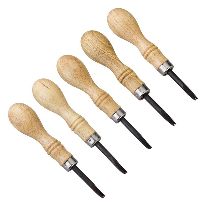 These bevelers bevel and round off edges of leather. The larger the number the wider the bevel.